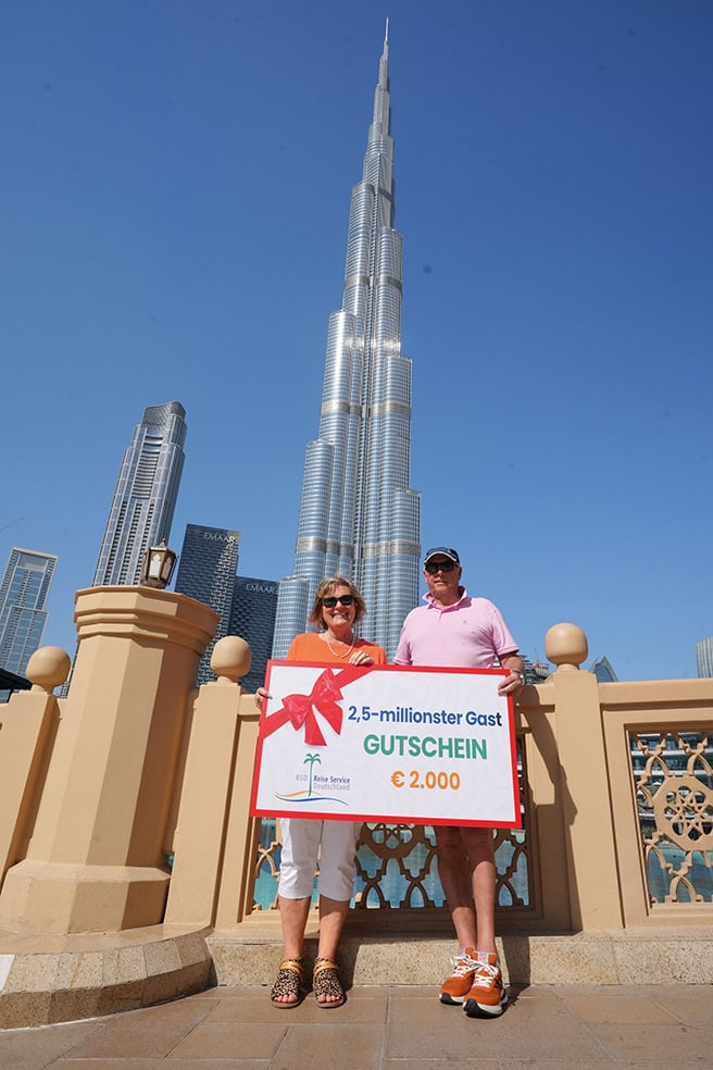 Reiner and Annemarie Lipps really had no idea. Together with their RSD travel group*, they arrived in Dubai from Frankfurt after a pleasant flight. Ahead of them lay an eight-day travel adventure in this unique Arabian mega-city. Booked completely normally. With two top hotels. With fantastic excursions. With palm island. And much more. The sprightly pensioners from the Ortenau district in southern Baden boarded a traditional dhow on the first evening. The boat glided along the Dubai Creek past a fantastically illuminated skyline.
