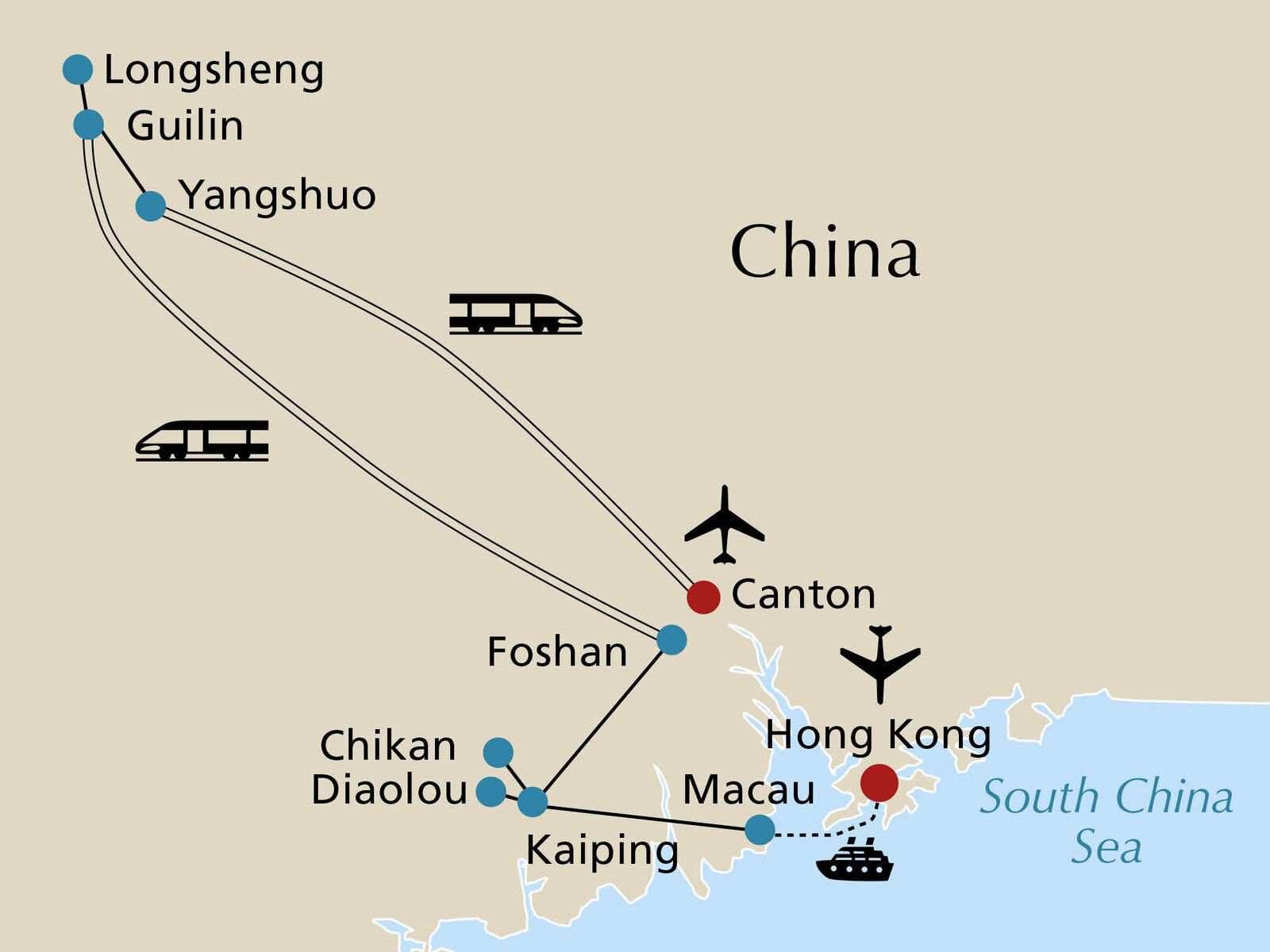 Explorer package: The package includes the full-day excursions ‘Diaolou (World Heritage) and old town of Chikan incl. lunch‘, ‘Longsheng Rice Terraces incl. lunch‘ as well as the ‘Guangzhou city tour with Nanyue King’s Museum, Sun Yat-sen Memorial Hall & Canton Tower incl. lunch‘: only £249* p. p.